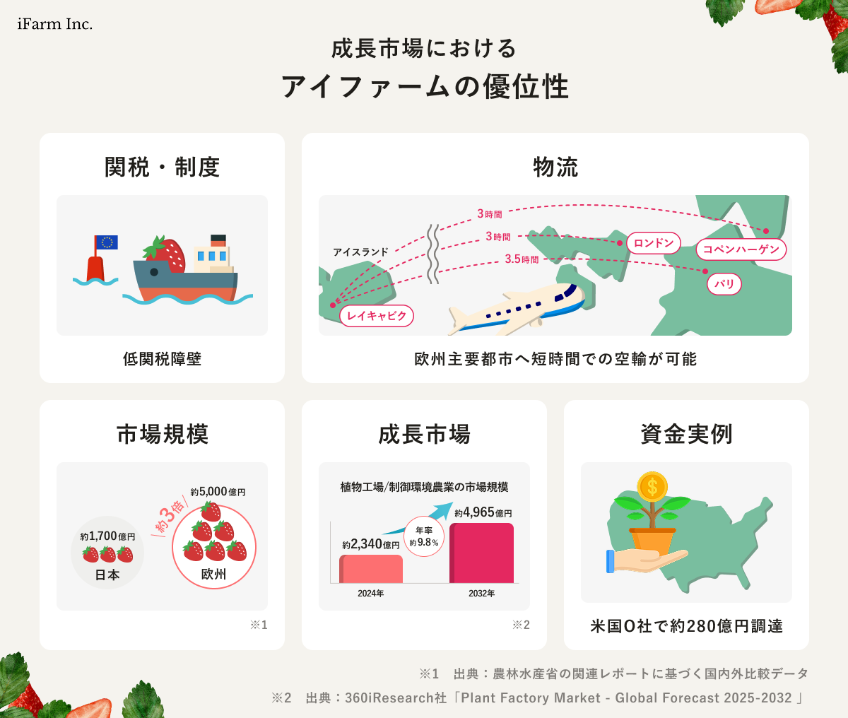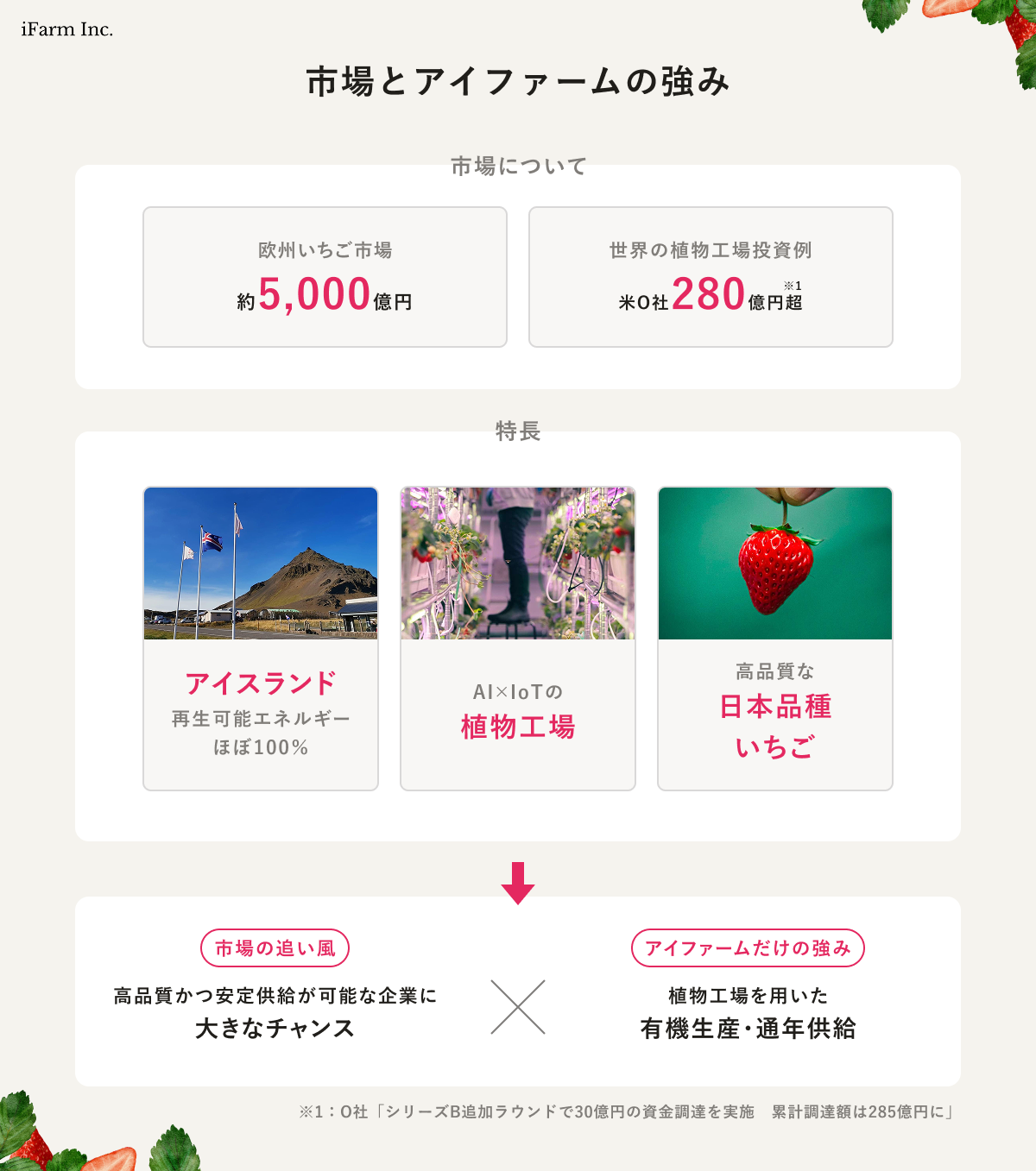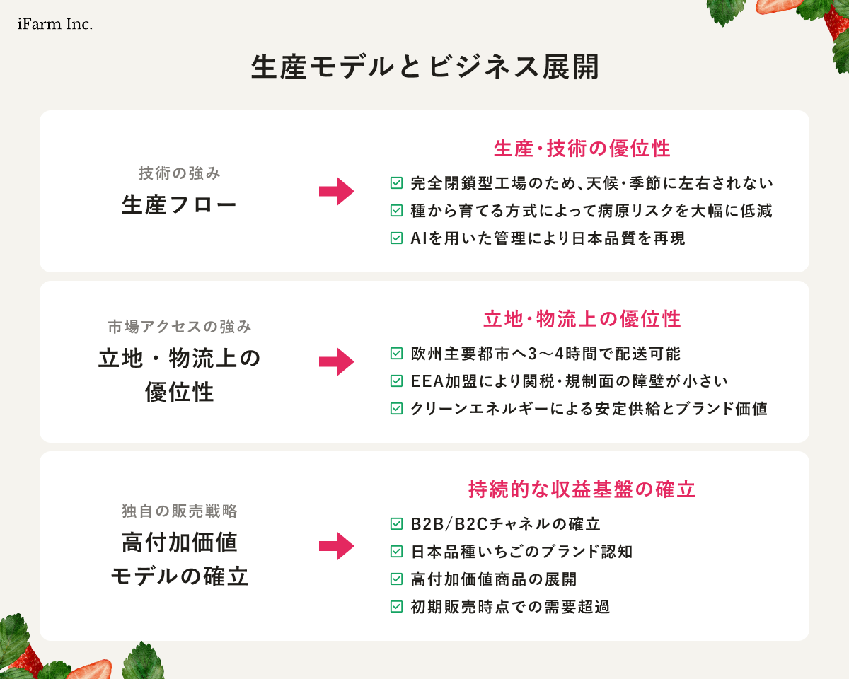 「アイスランド(再生可能エネルギー) × 植物工場(次世代農業) × 日本いちご(高品質)」を融合した、次世代のグローバルアグリビジネスです。