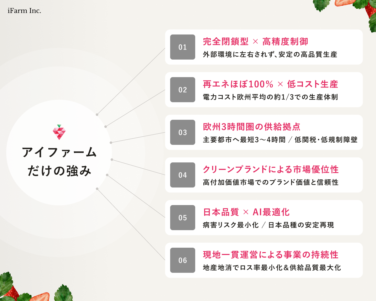私たちは、「高品質の日本品種いちご」という独自の価値を欧州市場で確立し、単なる価格競争ではなく、品質と理念で勝負する“ブランド競争“へとシフトします。