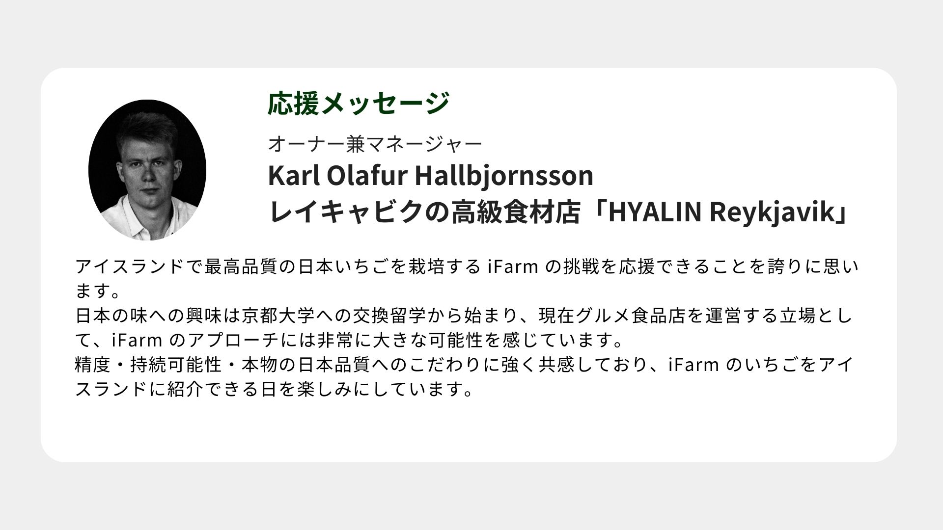 アイスランド法人iFarm Iceland ehf. CEO